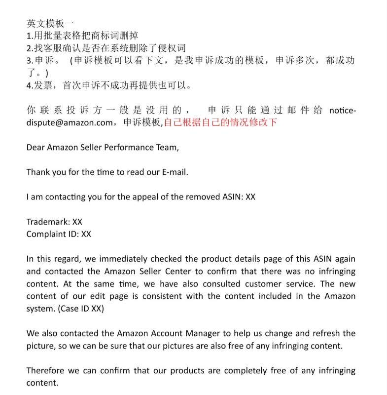 这里给大家分享一套经过多账号、多场景实测,申诉全部成功的亚马逊商标侵权申诉 POA 模板,附带完整的前置操作步骤,从侵权词批量删除、找客服确认系统清理完成,到开 case 模板、申诉邮件完整框架,每一步都有可直接套用的内容,哪怕是新手卖家,也能根据自身情况快速修改使用,大幅提升商标侵权申诉的通过率。