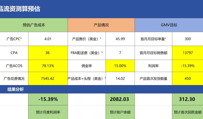 配套亚马逊流资测算表格,帮你系统算清项目投入产出,有需要直接下载~