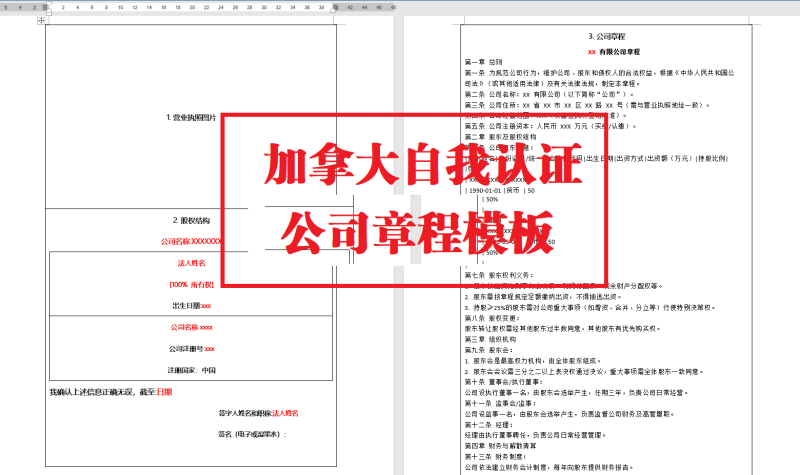 附件为加拿大站《自我认证模板》和《股权 + 公司章程模板》,直接参考模板准备材料,省时又省心!